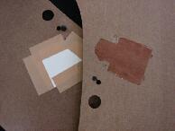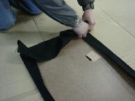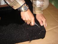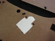 ウレタンを台座の形に切り抜いてウレタンを元の位置に戻します。この位置だしが結構難しいです。フレームは下へ下がるほど面積が広くなるので固定しやすくなります。私は少し上に上げすぎたようです |