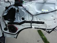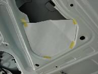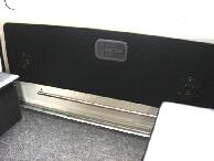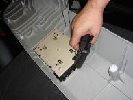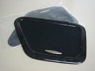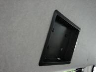 | エスティマの回転式対座シートを後ろに向けた場合用にリアゲートにモニターを埋め込んでみました。使用したモニターは毎度お馴染み埋め込み専用モニターで1個9500円(安っ)のものです。まずモニターの枠のセンターと、リアゲート上部の樹脂パーツの左右センターにドリルで穴をあけます。そこにドライバーなどの細いものを通しておき、枠を埋め込むための左右の線引きをします。リアゲート樹脂パーツは裏面の筋交いを目安に穴あけをするとセンターが出しやすいです。 |