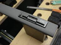 左右のラインをキッチリとったらあとは上下の位置だしを現物あわせで行います。こうすることによりいちいち左右を測ることなく確実にセンターが出せます。枠を埋め込んだら裏側からホットボンドを枠に沿って流し込み表側から抜けないようにします。枠が固定できたら配線とモニターを押し込んで完成です。