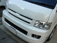 型紙のフチを油性マジックでなぞっていきます。これによってある程度の輪郭がバンパーにマーキングされることになります。 |