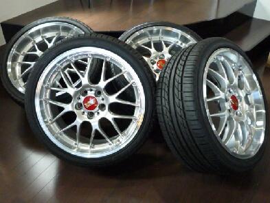 念願のBBSを購入しました。かなり熱い金額でしたが・・・今回は19インチ8.5J&9.5Jの組み合わせです。純正のBBSセンターキャップは黒に金文字のものがついてきます。