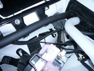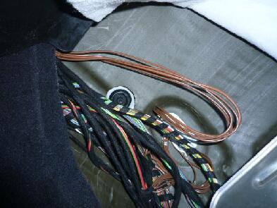 画面右上部にハーネスの塊があり、そこから車内に引き込んでいるようですが、この位置から車内に入れるとダッシュボードの裏になってしまうので車内側の分解が面倒になります。