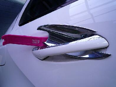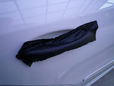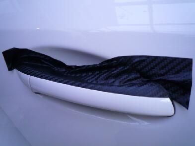 とりあえずドアハンドルの左右の中央にシートを当ててシワが出ないよう