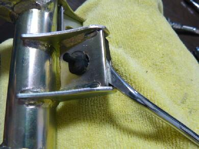 | 純正のハンガーについていたゴムのブッシュが2つありますが、それを交換するパーツに移植します。 |