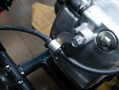 | ステップの下にもアクセルワイヤーが繋がってますのでこちらも固定位置を変更して余裕を持たせてます。 |