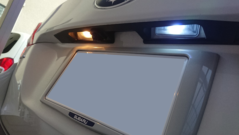 リアのナンバープレートの照明をハロゲンからLEDに交換しました。片手で作業をするわけですが、まぁ出来なくないレベルではありますが、結構大変です。両手で出来ればなんてことのない作業です。ランプをそれぞれ内側にスライドさせて取りはずしてバルブを交換するだけ。球はT10です。とりあえず手前側のみ交換したタイミングで撮りました♪