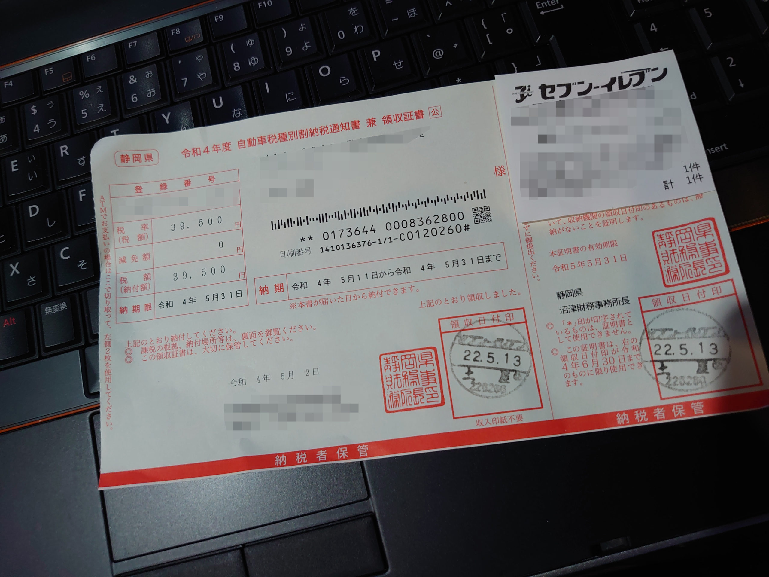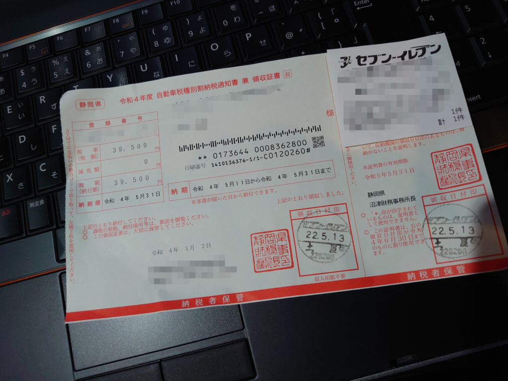 ロードスターRFカスタム, 脳卒中・脳梗塞・脳出血ブログ 仕方ないので払いました・笑 2022年5月13日 7013WORKS コメントする この時期と言えば自動車税です。いやだけど払わないわけには行かないので払ってきました。排気量が大きくないのでコレで済みますが、排気量が大きいと結構痛い金額ですよね。最近は排気量の少ない車が多いのでちょっとはいいのかな?うちはアウトバックも2500㏄ということで結構痛いです。画像はロードスターRFの分です。