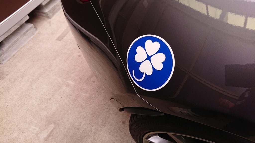 こんなものを取り付けるは恥ずかしいんですが、このマーク。障害者マークです。これを付けていると、皆さん優しいです。道も譲ってくれます。ちょっと運転が下手っぴですがそんなときは大目に見てください。サンキューハザードを出したくても片手麻痺では曲がってる最中など、だせないタイミングもあります。申し訳なく思ってます。