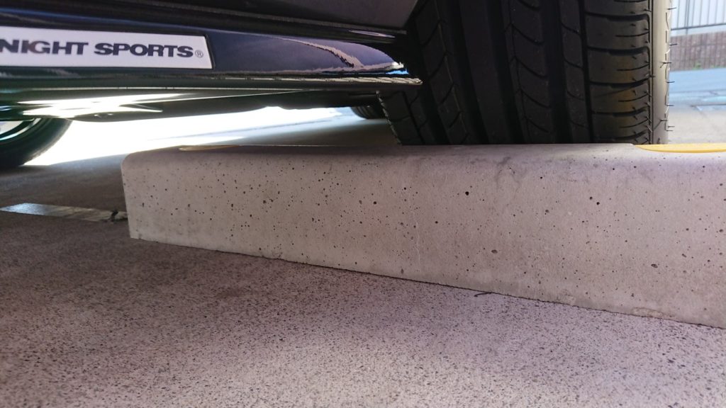 デュフューザーを取り付けると必然的に最低地上高が変わってくるわけですが、ナイトスポーツのデュフューザーはかなりのクリアランスで、輪留めも余裕でクリア、ちゃんと輪留めまで掛けられます。あまりにも高い輪留めは無理ですが普通の輪留めなら大丈夫そうです。あと5cmは余裕がありそうです。