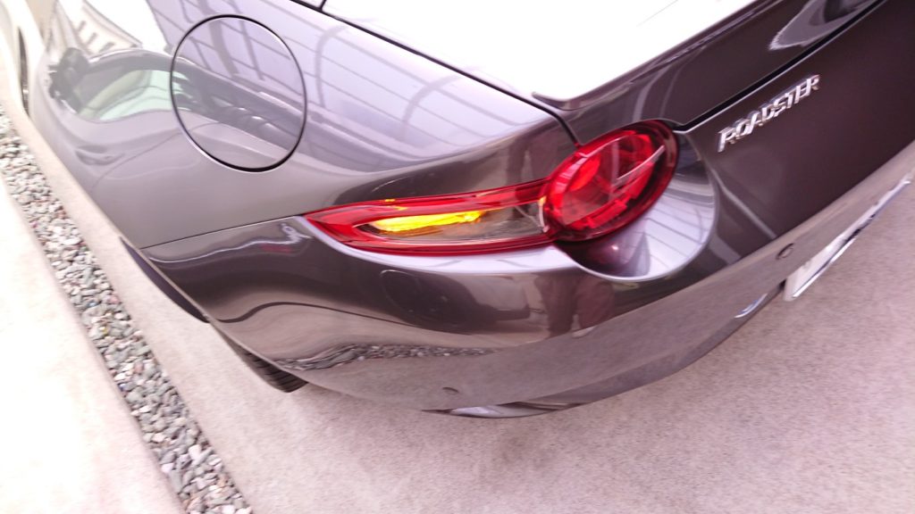 テール周りを養生テープで養生し、テールランプのボルトを緩めて内張剥がしを慎重に使うながらウィンカー裏のロック?クリップを気合で外しました。テールが落ちないようにステアリング交換と同じ要領でナットを少しだけ掛けておきました。テールランプ裏の配線がうまく外せずイラ付きましたが無事にウィンカーバルブと流れる基盤に交換できました。ちなみにテールを持ったままコネクターを外すのは片手じゃ無理でしたので嫁に持っててもらい自分がコネクターを外しました。どうにか完成しました。画像では判りにくいけど横に一番長く点灯したタイミングで撮りました。