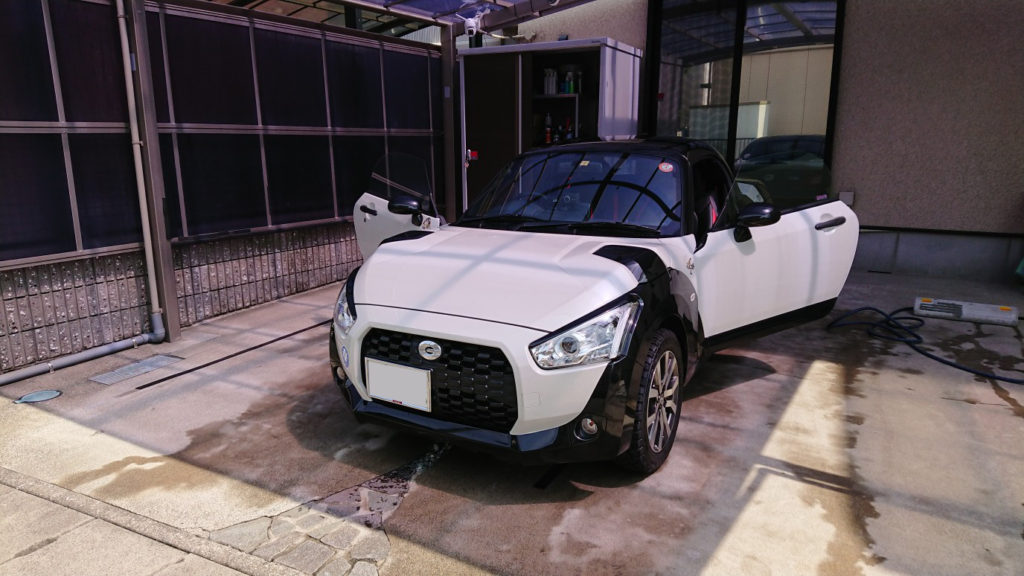 やや曇っているこのタイミングでお馴染みのシャンプーで洗車します。晴れの日は水垢になっちゃうのでふき取りがゆっくりで済む曇りの日を狙ってやります。屋祢下で洗うので雨が降ってきても余裕です♪って自分で洗えるのは車の上半分ですが・・・しゃがんで洗うような体勢は結構ツラいです。
