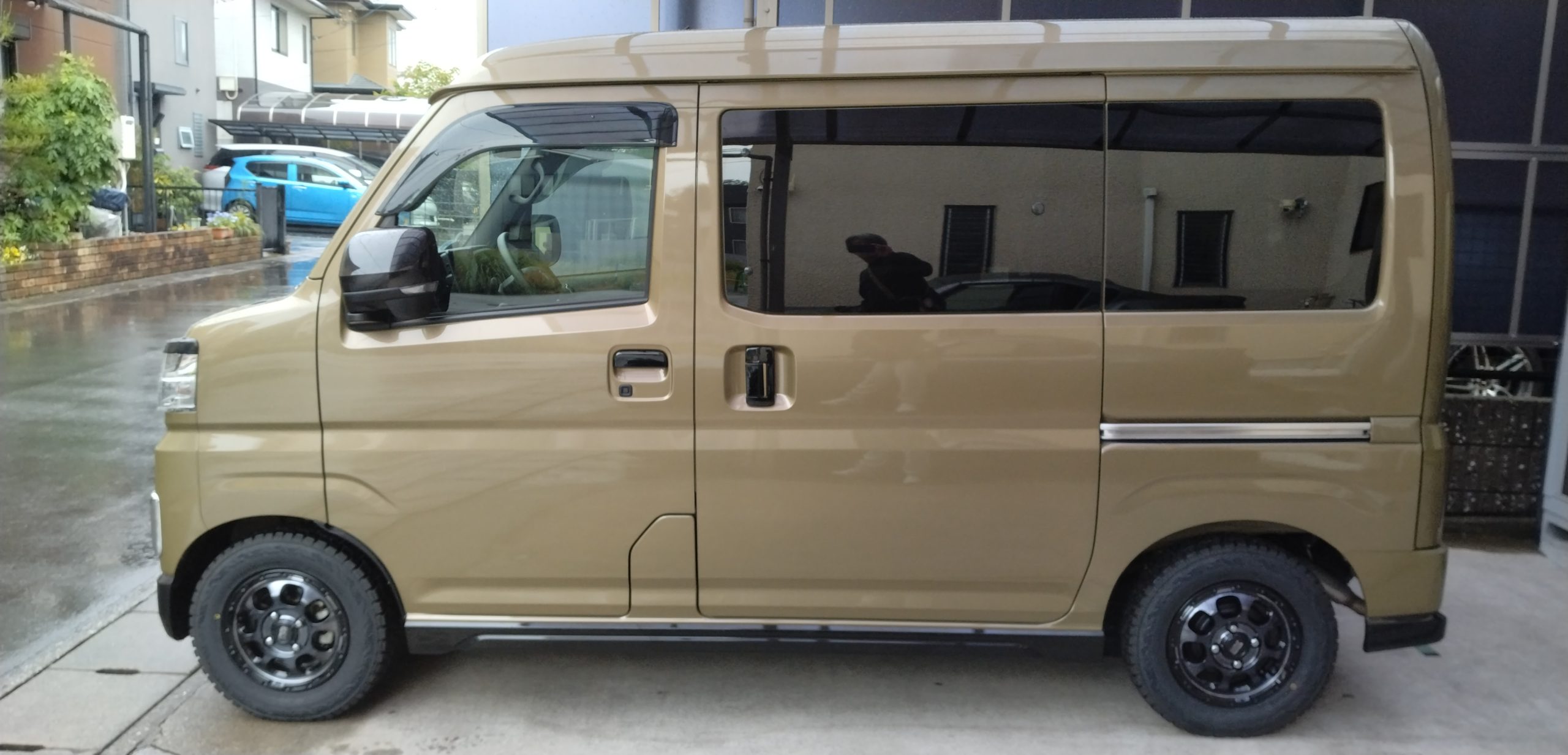 そんなわけで、速攻で交換しました。とっても無難な12インチのLT仕様で得意のゴツゴツ系タイヤ、TOYOのR/Tです。といってもうちのは2駆だし、実は車高を落としてますんで。雰囲気だけです。実は車高を落とさないと乗り込むのが今以上に大変で大変で。ピラーにあるグリップにぶら下がりながら乗り込んでます。もっと真っ黒が良かったんですが、まぁホイールキャップよりは個人的に良いかと思ってます。※キャップ外して鉄チンでもよかったんですが、黒鉄チンがまだらにくすんでいて塗装前提だったので現在の半身麻痺の状況では塗り直しも厳しいので諦めました。