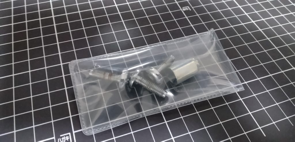 ナンバープレートに装着するボルトです。普通自動車用なのでちょっと長いですが使えればいいなと思ってます。コレも以前乗っていた車のお古です。こういう細々したアイテムで結構コスト掛かるんで。なんでも外して再利用です。笑