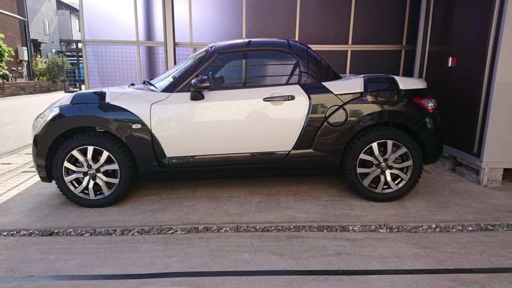 やっとタイヤが届きましてホイルに組んでもらい装着できました。このタフトサイズのオープンカントリーR/Tをどれだけ待ったことか・・・少しでも車高をあげたいので外径を大きくした感じです。165/65R15というサイズが4月発売というアナウンスと共にオーダーを入れたんですが、結局入荷はGW中。発送もされず連休明けになってしまった感じです。やはり少し大きめの外径だから乗り降りが少しだけ楽になった気がします。気になる乗り心地ですが以前のX-ATとスピードラインCR5のほうが良かったです。今回のホイルは純正流用(タンク・ルーミーカスタム純正)だけあってクソ重いのでそれもあるかも。あとのろくなりました。もっさり感アップ・爆 サブコンがなければもっと酷いかと・・・ホイールデザイン的にはエクスプレイにぴったりマッチしているかと♪なんかチョロQみたいな・笑