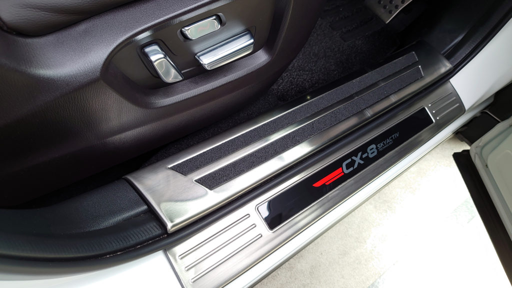 実はCX-8のガソリン車ゆえに間違われると事件なのでFUELステッカーを貼ろうとハセプロのを準備してありました。んで早速貼ろうと思ってフタを開けて燃料コックを見たら…ガーン。純正品オプションののステッカーが貼ってある的な。納車されてから一度給油に行ったのですが、私は助手席で、嫁さんが運転席&給油だったもんだから嫁は知っていたらしい…自分で給油しなかった私はしらなかったわけで…まぁ予備としていつか買うであろうレギュラー車のためにキープしておきます。