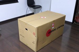 レカロのように平べったくリクライニングを倒した状態で来るかと思ったら、BRIDEはこんな感じでくの字状態で梱包されてました。AD-Rのときも同じシートを購入してますが、こんな状態だったか忘れてます・笑