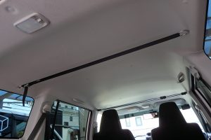 とりあえずこんな感じでワンタッチベルトを装着してみました。このベルトがプラダンの最後尾を支える感じで、後部座席にある左右のアシストグリップにワンタッチベルトを渡して中央部分、最終的にフロントピラー部分になにかの橋渡しをしてルーフラック(プラダンのためだけに)的な使い方ができればと思ってます^^