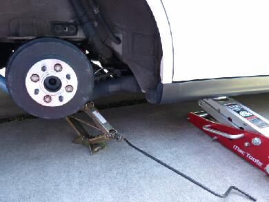 フロアジャッキで車体を持ち上げて、パンタグラフジャッキでロアアームの