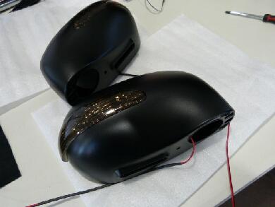 で、未塗装だったケース側は御馴染みのプライマーとマットブラックの缶スプレーで♪このドアミラー、安物のクセにわりと造りが良くかなり気に入りました*^^* 当然ですがミラーの部品本体を仕込む内側ベタベタに真っ黒に塗ってあります。中の鏡面の向きで内側に白っぽいのが見えたらカッコ悪いんで・笑 |