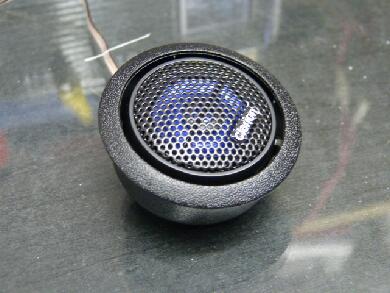 というわけで・・・なんとかならんもんかとガラクタ箱をあさったところフォーカルの埋め込みツィーター用のケース的なものがあったのでコレを利用してドアパネルに設置することにします^^ ドアに設置するぶんには配線の引き込みもなくてラクなんで^^; 実はこのケースにFOCALの文字があったのですがクラリオンとのWネームはいくらなんでも酷いので缶スプレーで黒くして無地に・・・ |