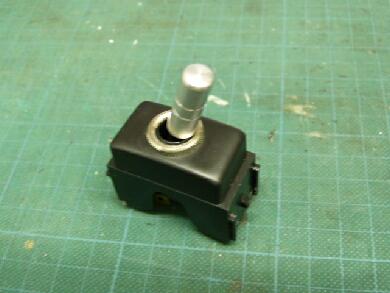 トグルスイッチを表に出すための穴が綺麗に開きました。トグルスイッチはパネル表面の出幅を調整できるようにダブルナットになってます。 |