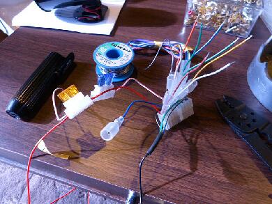 今回取り付けるセキュリティのハーネスの一部です^^ まずは説明書に沿ってどの配線がなにであるかをテープなどでわかりやすくします。またこの段階で必須の配線とオプション的な配線とを分けて作業すると多少気が楽になります・爆 使わないと思われる配線をわざわざギボシにしても狭い車内で場所を喰われるだけですので^^; |