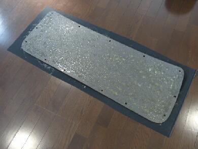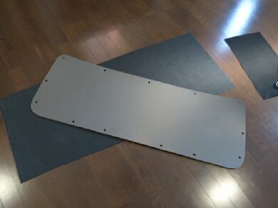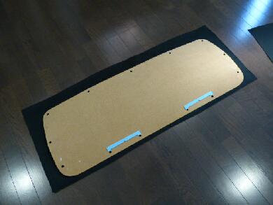 ということでアルカンターラ張りにします*^^* パネル表面にボンドを吹いて・・・