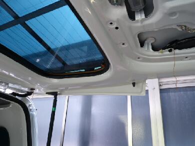 通し終わったら室内のルーフ側面の溝に適当に配線を・・・内張りがないと異常なくらいに簡単にフロントまでケーブルを引き込めます・爆 |