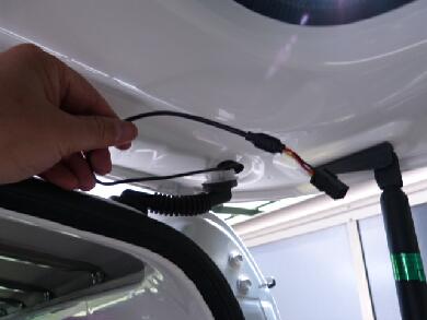 | 今度はブーツの中にバックカメラの配線を通します。 |