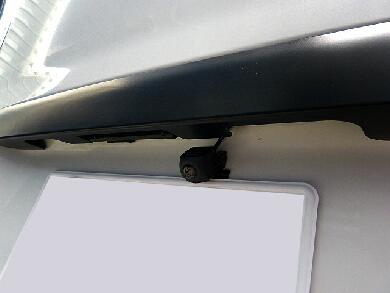 | バックカメラはこんな感じでナンバーの上に取り付けました。センターに取り付けたかったのですが、リアゲートのノブがあるので操作しにくいので若干右にずらしました。 |
