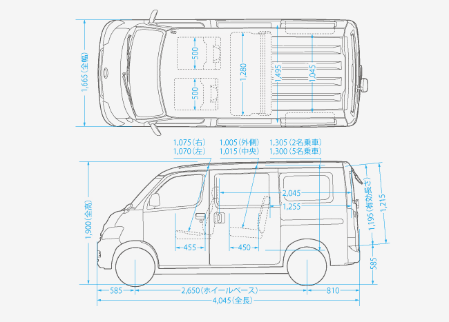 ■寸法図 GL(2WD)・2/5人乗り・5ドア(単位:mm)