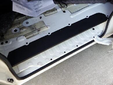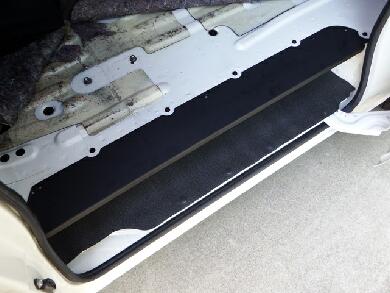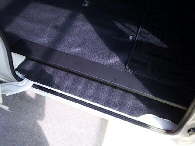スライドドアをドアを閉めた感じです。隙間的には20〜30MM程度でしょうか。あれだけのスペースをステップとしてカットされているとフロアの有効面積が結構減ってしまいますんで・・・ウチの場合はこのステップ部分にモノが落ちたりしてやっかいでしたが、コレでバッチリです♪
