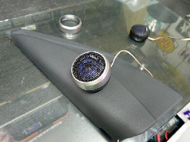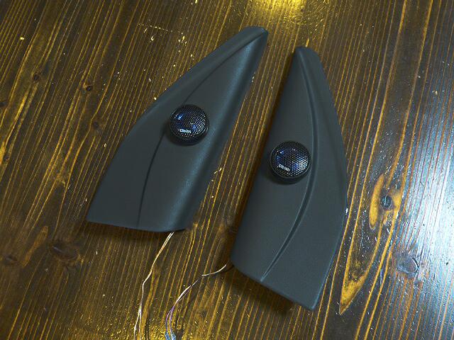 黒いパネルにシルバーのケース入りのツィーターよりは真っ黒同士のツイーターのほうが納まりが良い予感です。って埋め込むわけでもなくなんとなく貼り付けているだけですが・爆
