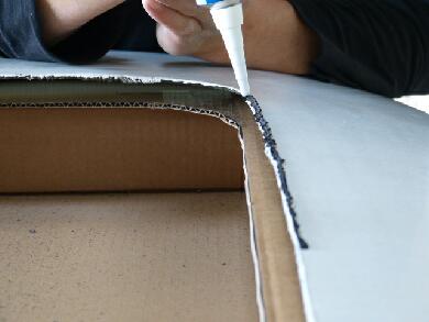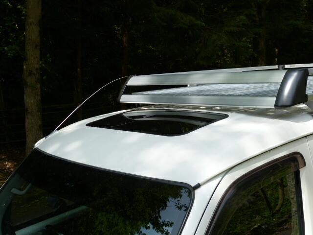 画像では判りにくいですが、ルーフの内張りとサンルーフの内張り枠の隙間が出来てます。タウンエースの場合、ルーフの鉄板に直接スポンジの内張りがついている関係で普通の乗用車のように厚い内張りが無いためです。ですので通常の内張りのある車ならばかなり綺麗に収まると思います。逆に曲面や厚さのある内張りであっても馴染むようにゴム製で出来ているのでバッチリ収まるかと思います。 |