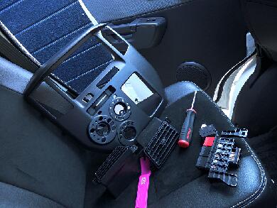 ハザードスイッチや助手席シートベルト警告灯、エアコン吹き出し部分などを外します。全部外すことでマスキングの必要のない状態に出来るので結果的に楽かと・笑