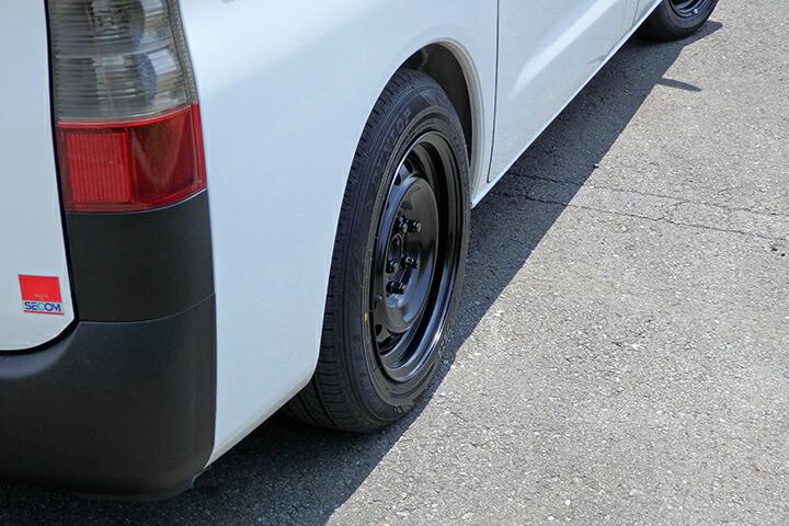 ■15インチ 加工鉄ホイール(鎌ヶ谷ワイドホイール製 加工鉄チン)の装着