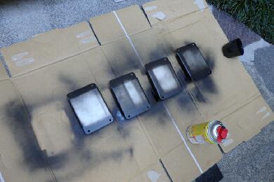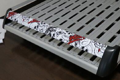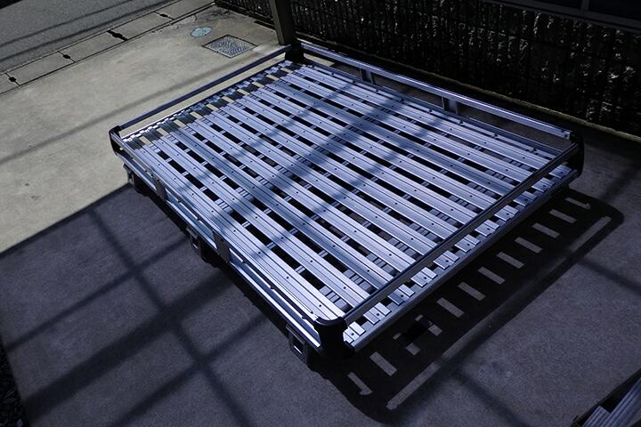 | このキャリア、降ろすのも大変ですが載せるのも結構大変です。そのまま載せるだけでは面白くないのでカッティングシートでデコレーションします。本当はキャリア全部を真っ黒に塗りたいくらいですが、板金屋に頼むにもタウンエースに載せて持ち込まないとですので、また降ろして・・・の作業が面倒です。 |