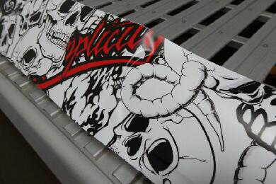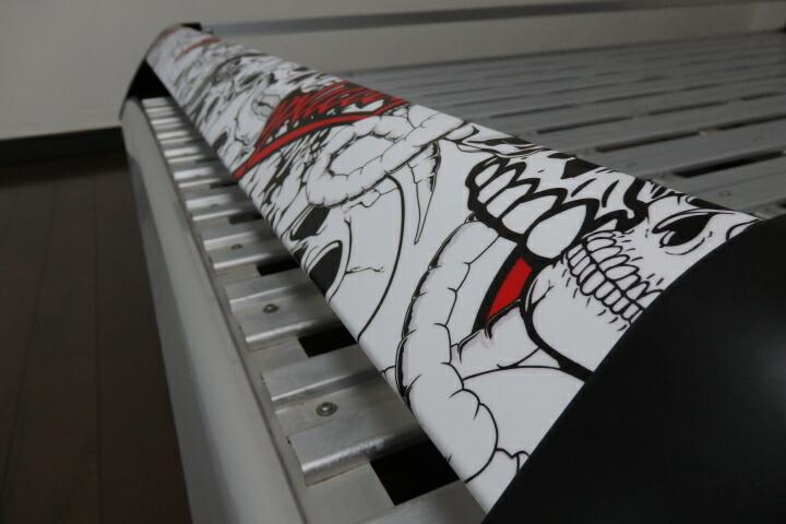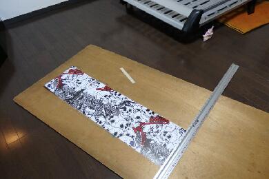 早速カッティングシートをカットします。うちのノセルダワゴンは先の画像でも判るとおり正面側が斜めのデザインになっていてその部分にカッティングシートを貼るスペースがあります。もっと派手なカッティングでも良かったのですが、わざわざ買うのも・・・そこで以前に乗っていたZOOMER−Xのサイドパネルに使用したカッティングの余りを使用します。 |