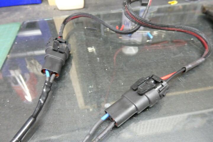 両方の配線を束ねた状態で再度収縮チューブでまとめてから再度コネクターに配線を戻します。 |