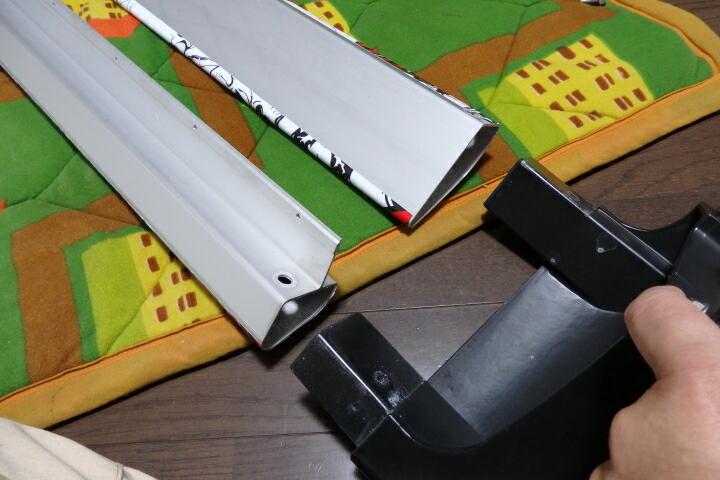 分解したアイバワークスのキャリアの先端部分を室内に持ち込んで再度取付位置を検討してみます。下側のフレームに取り付ける場合はフレームが短いので当てている位置ではステーの取り付けができません。
