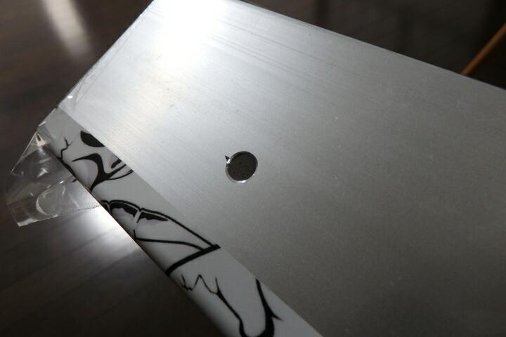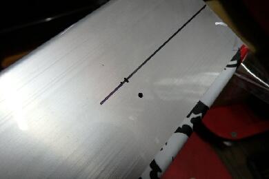 手前の点が本来穴を開けたかった位置ですが、中空だけにナットを押さえるスペースがないのでラインの位置まで下げました。