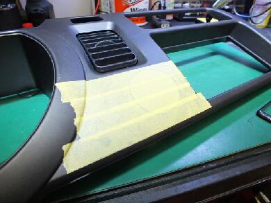モニターを埋め込む位置にマスキングテープを貼って位置出しをします。