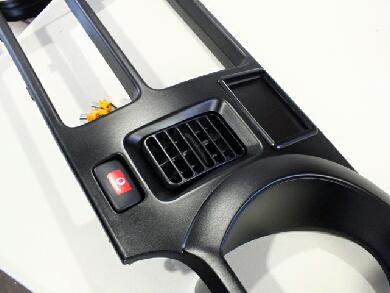 上部にあった本来のハザード位置はモニターで使用しているのでエアコン噴出しの下側に移設しました。スイッチがしっかり刺さっているのがわかると思います。 |