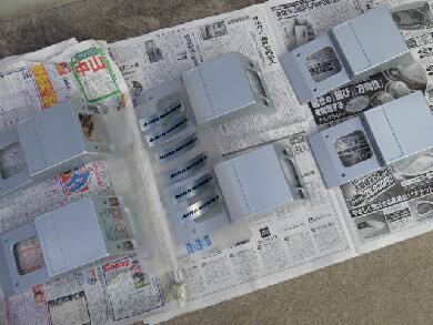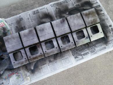 プライマーを吹いて、そのあとお得意のマットブラックを・・・丁寧にやらないとタレるんで^^;