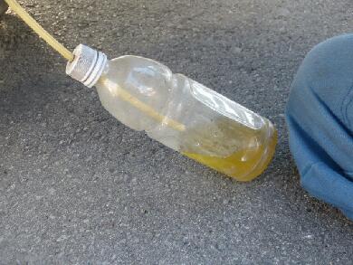 ペットボトルに抜き取られたブレーキフルードとは色が全然違います♪とっても綺麗になりました*^^*