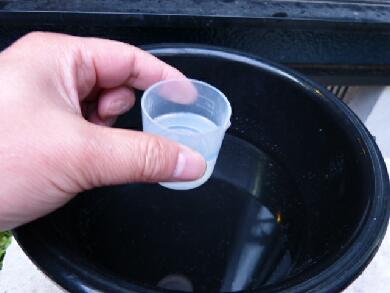 お水に洗剤を30ml入れます。つまり100倍に希釈します。間違っても
