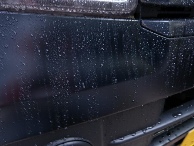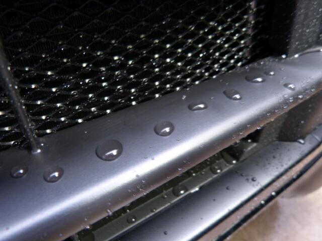 自慢のマットブラックのバンパーもゴシゴシ・・・塗ったばかりだから弾いて当たり前って思うでしょ?でもこんなに弾かないんですよ、本来^^
