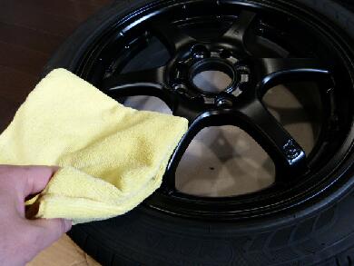 マイクロファイバークロスでコーティング剤の拭取りをします。